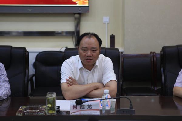 在宝鸡市凤翔县宝麟铁路公司会议室,宝麟铁路公司党委书记、总经理高建成率公司班子及中层以上干部热情接待何成龙一行,就宝麟铁路公司发展和运营情况进行了详细介绍,并陪同何成龙一行现场考察了铁路货运调度室及车、机、工、电等情况。